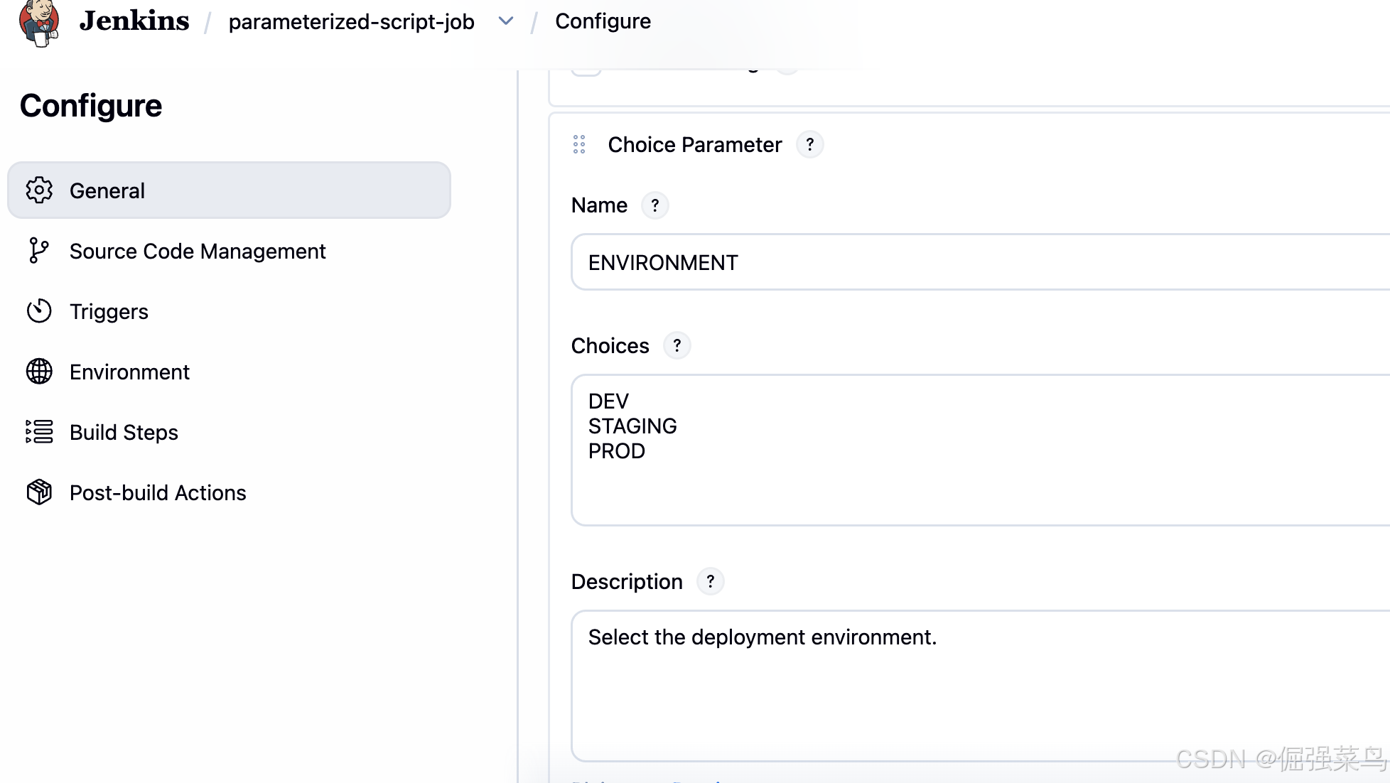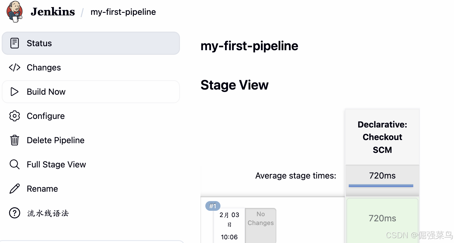 pipeline { ... }: 定义整个流水线的核心块。agent any: 指示 Jenkins 在任何可用代理上运行此流水线。environment { ... }: 定义可在整个流水线中使用的环境变量。stages { ... }: 包含流水线中所有阶段的包装器。stage('...') { ... }: 定义特定的阶段。阶段有助于可视化工作流程。steps { ... }: 包含在阶段中要执行的实际命令。echo '...': 一个打印消息到构建日志的步骤。sh '...': 一个执行 shell 命令的步骤。