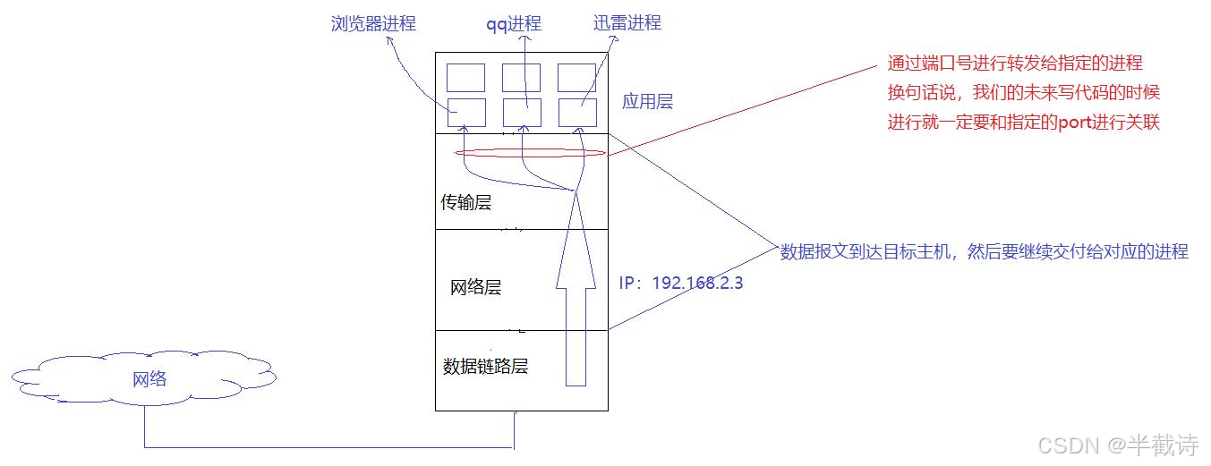 - 传输层根据端口号找到目标进程