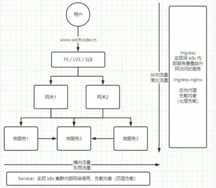 Service 是四层的(基于 IP+端口),无法理解 HTTP 协议(比如域名、URL 路径)。Ingress 填补了这一空白,它负责根据 Host(域名) 和 Path(路径) 将流量分发到不同的后端 Service。