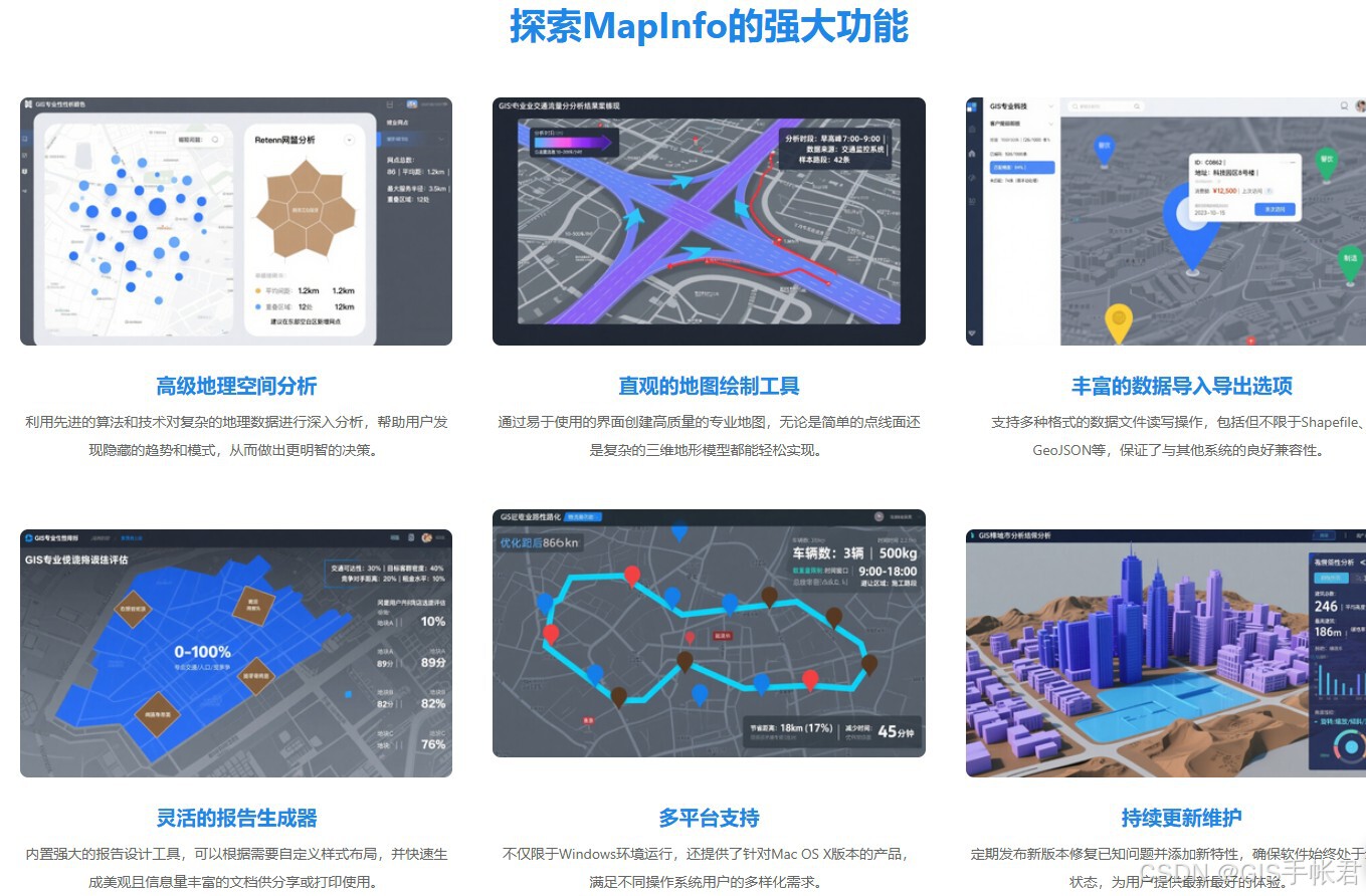 专注桌面制图的经典软件,以图形与数据库联动为核心优势,支持ODBC接口连接Oracle等大型数据库,地理编码功能便捷。适合市场分析、物流管理等场景的基础空间分析,但高级空间分析与三维可视化能力有限,难以满足复杂项目需求。