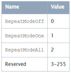 | RemoteCommandIDAdvanceRepeatMode 切换重复模式 | 7 |