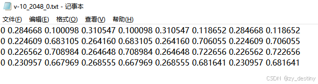 label为txt格式的yolo-obb目标检测格式,示例txt文件内容为: