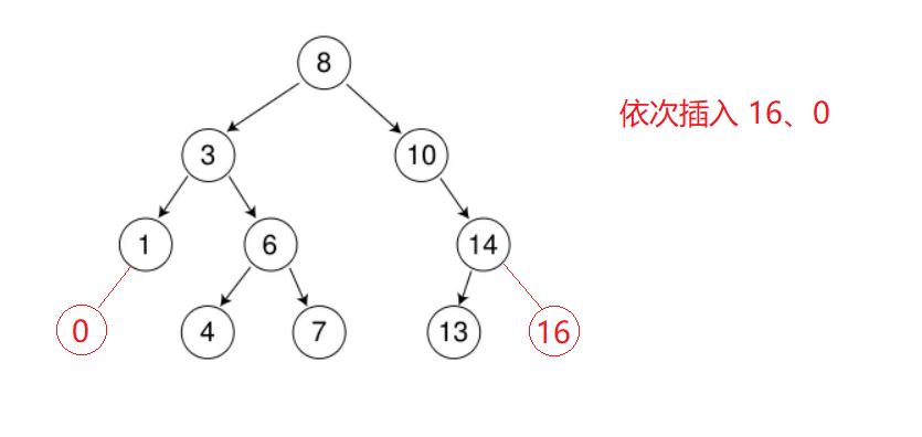 - 进入子树后循环1~5步,过程中如果碰到与根节点相同的情况,不插入,除此之外,到最后一定会找到空子树,此时新增节点插入即可。