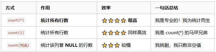 count(*)≈count(1)⭐⭐⭐⭐⭐ -