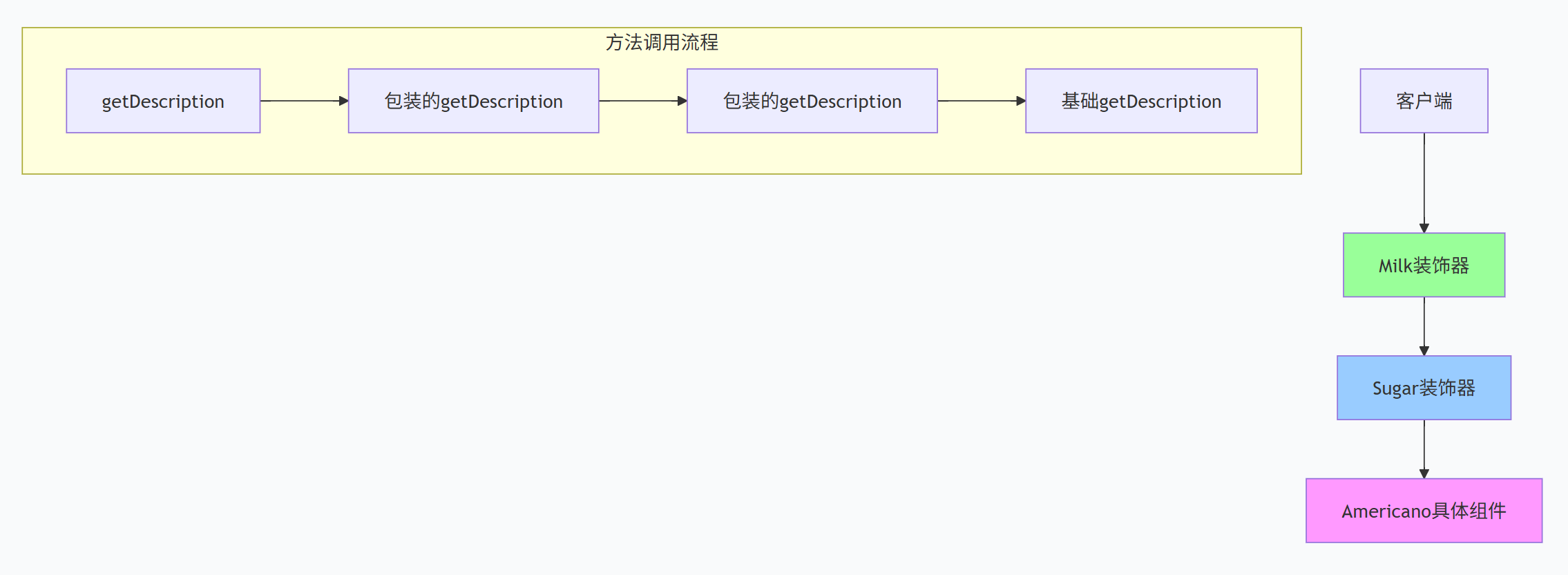 System.out.println(americano.getDescription() + " 价格: ¥" + americano.getCost());