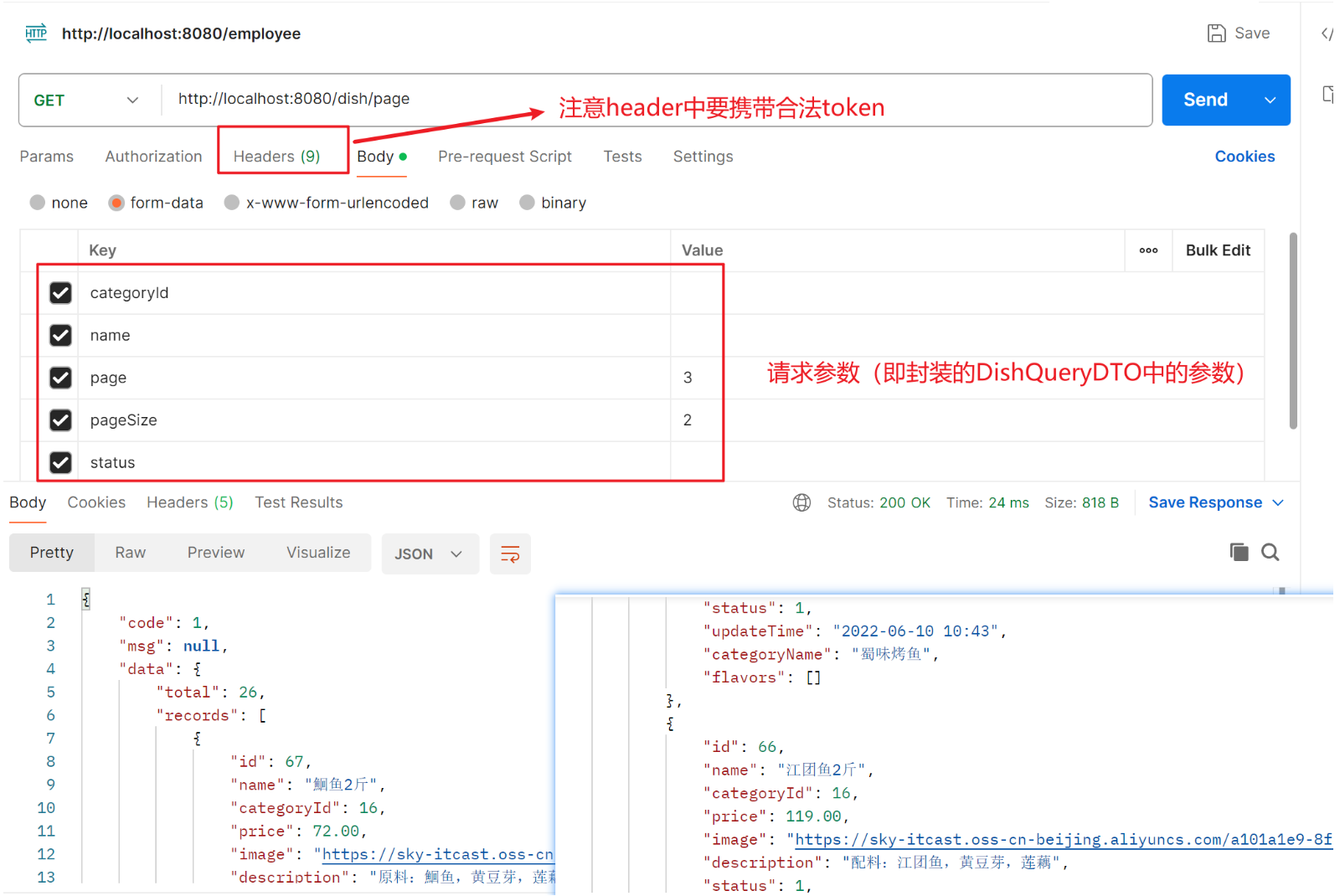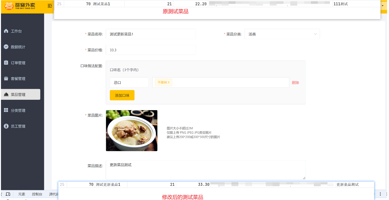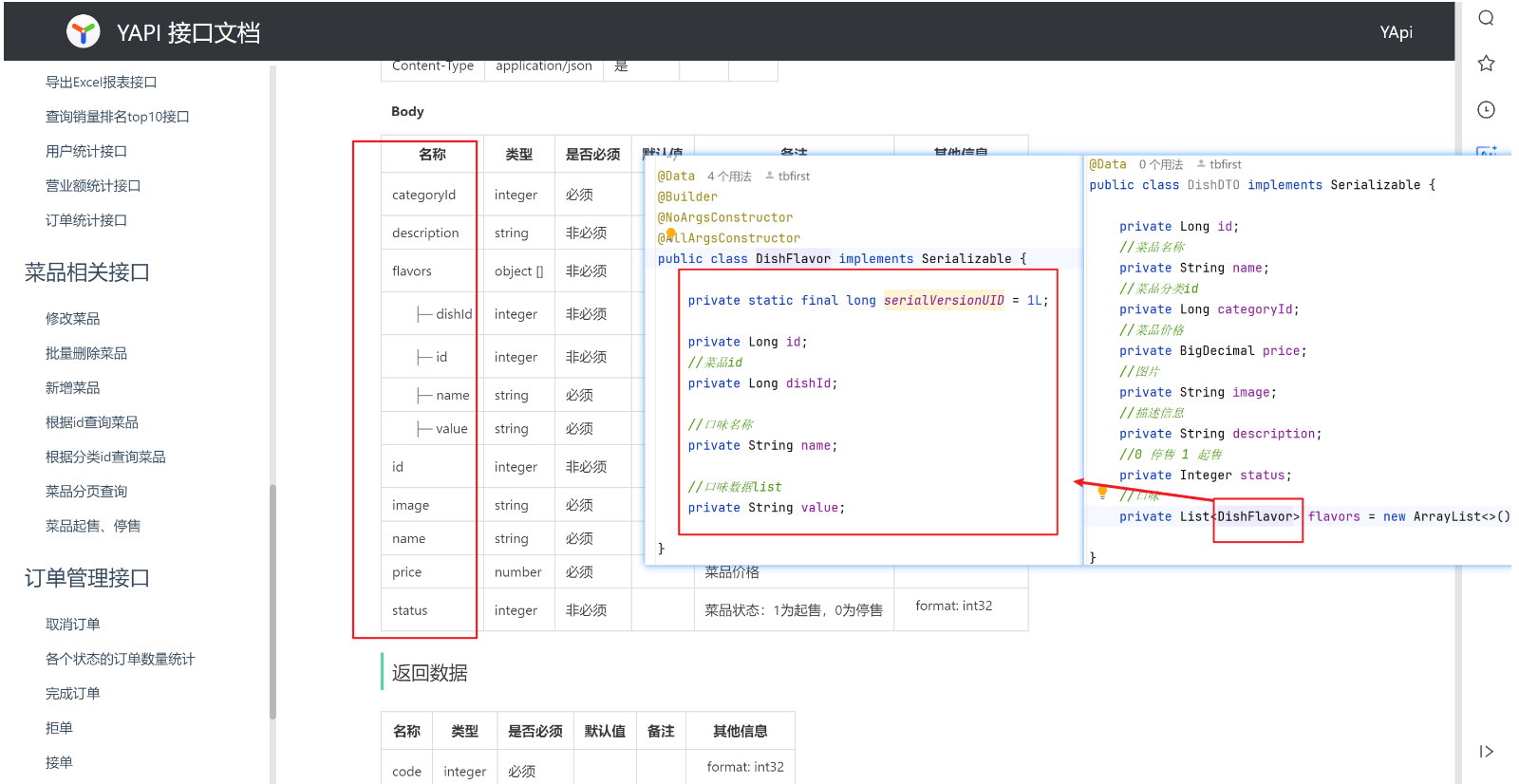 由接口文档可见,该功能包含:根据id查询菜品(未完成)、根据分类查询菜品(已完成)、文件上传(已完成)、修改菜品(未完成)