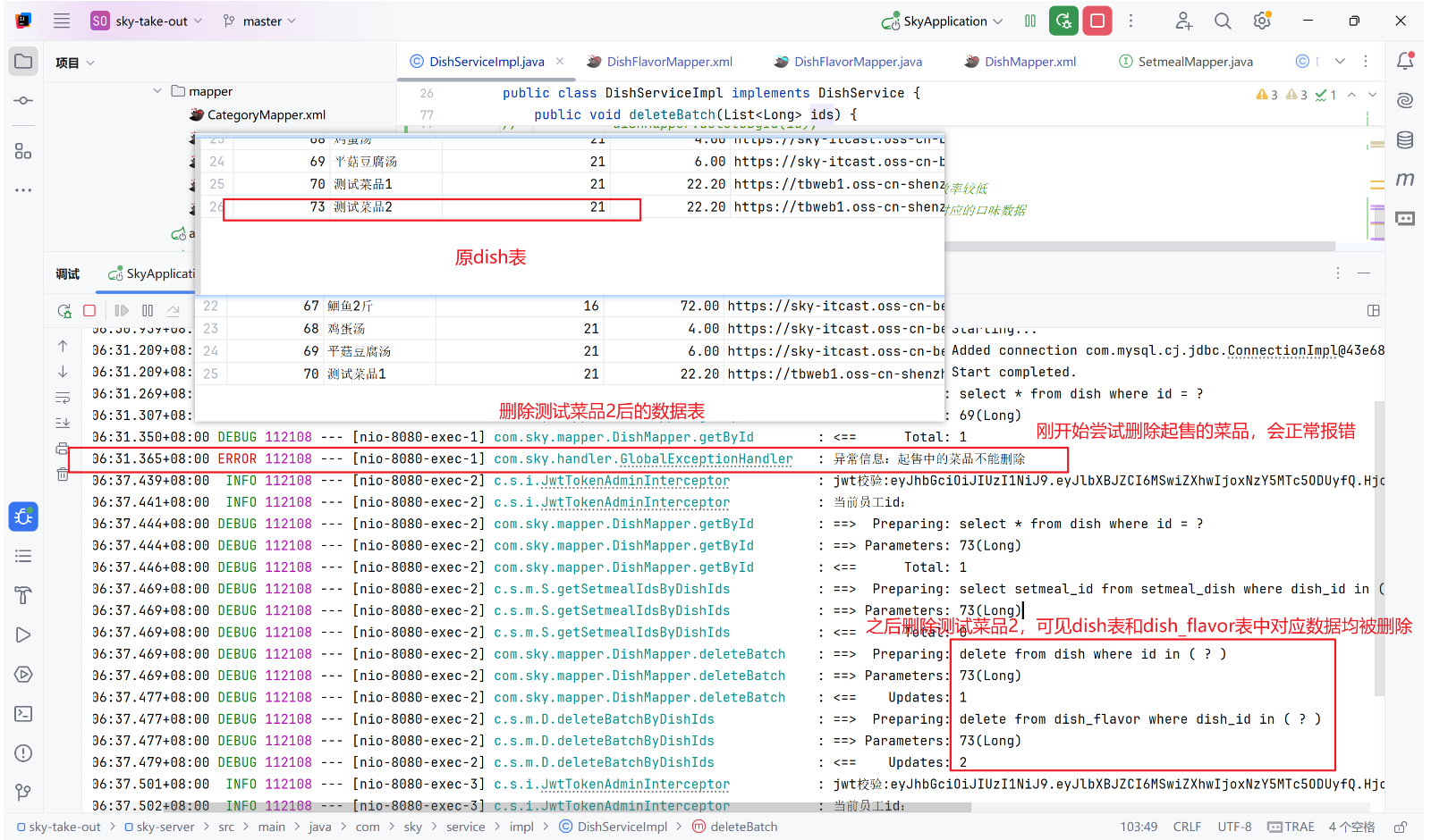 // 原版本每次删除均要进行遍历并且分别删除菜品和口味数据,效率较低