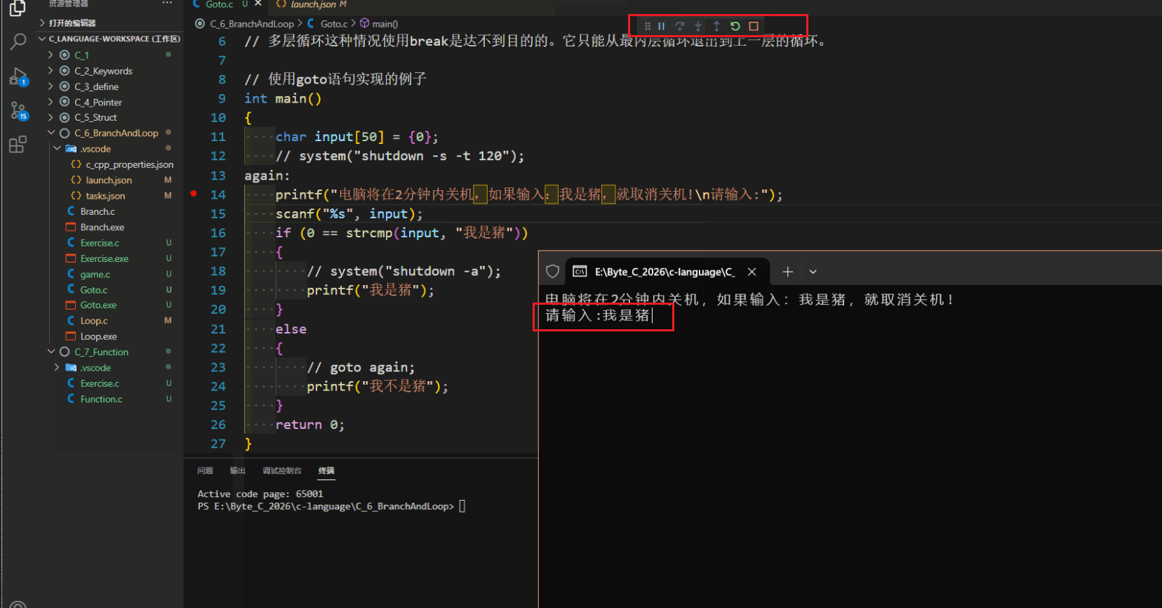①VSCode内部是在终端窗口来输入数据的