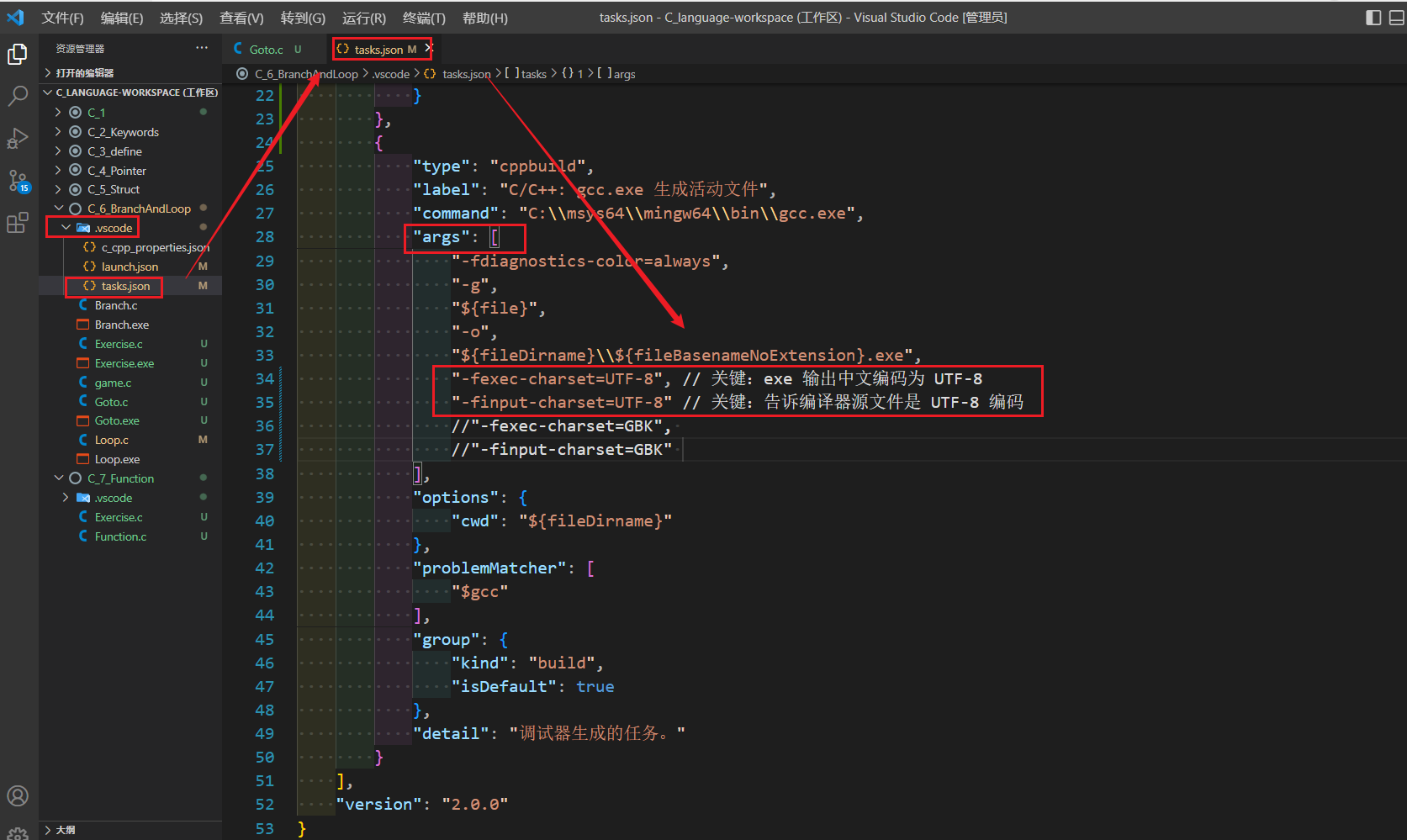 "-fexec-charset=UTF-8", // 关键:exe 输出中文编码为 UTF-8