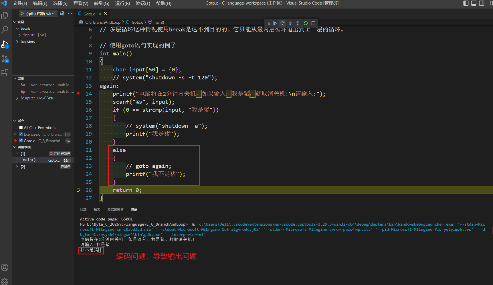 - 二、本例需要输入中文,但把输入的中文存入数组中发现不是UTF-8编码的导致程序输出不对