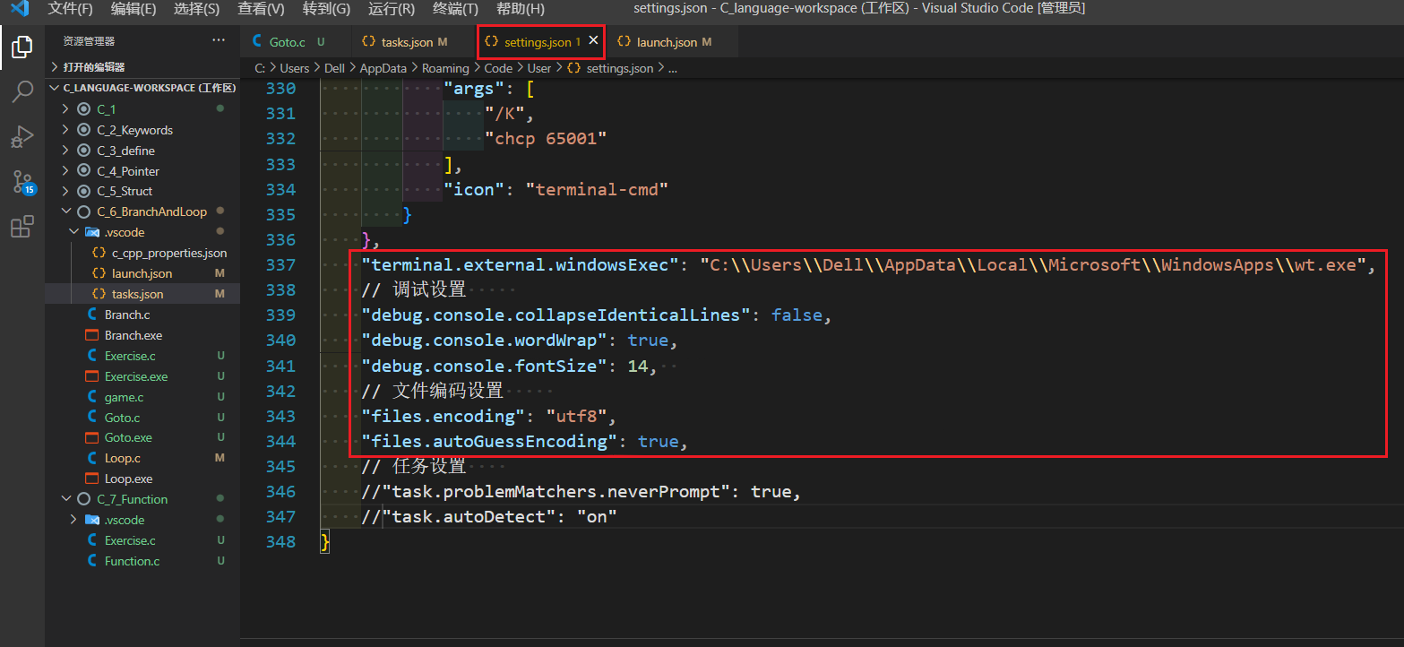 ⑤配置settings.json