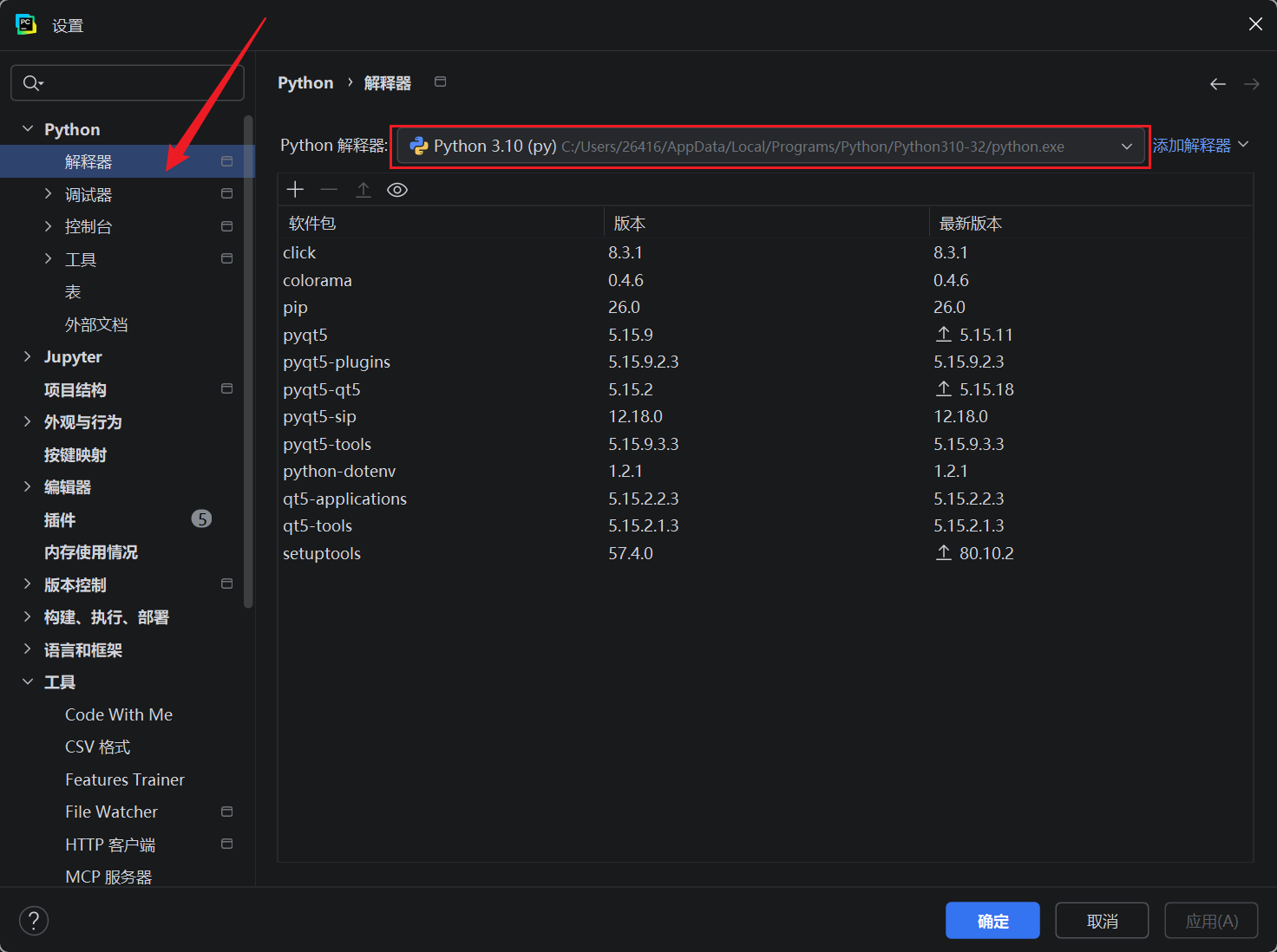 核心是找到 pyuic5.exe 的存放路径,以 Python 环境为例,我的路径如下: