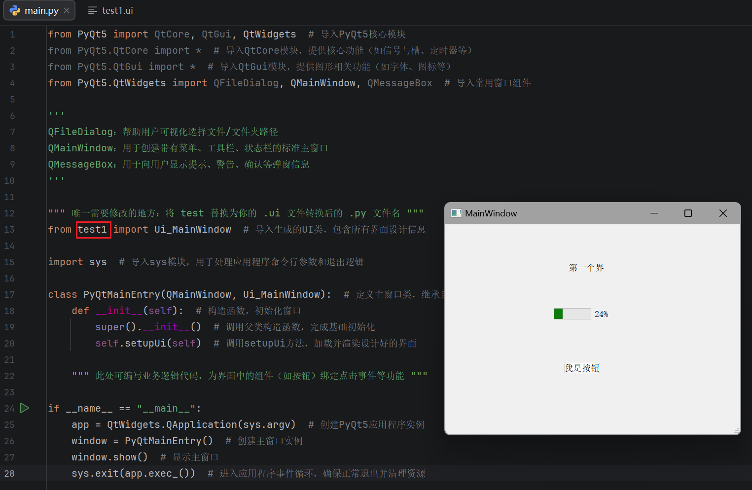 """ 唯一需要修改的地方:将 test 替换为你的 .ui 文件转换后的 .py 文件名 """