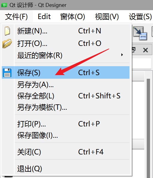 界面设计完成后,先通过 Ctrl+S 保存设计文件(后缀为 .ui)。