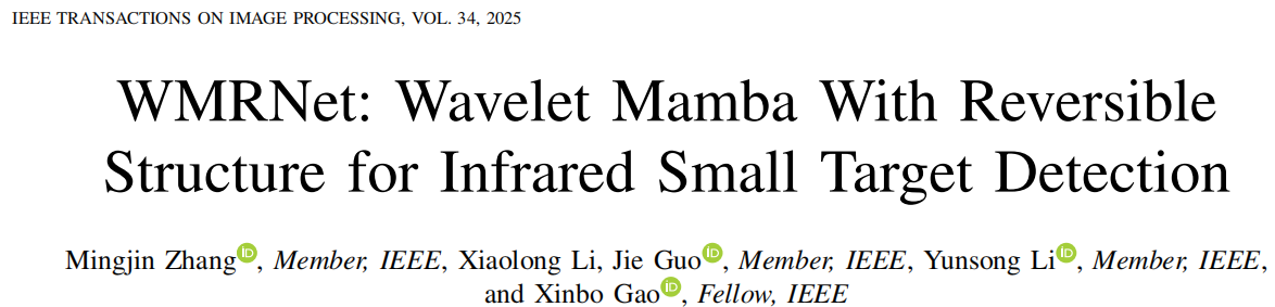 在现代遥感与预警系统中,红外小目标检测(IRSTD)被公认为一项极具挑战性的任务 。不同于常规的目标识别,红外图像中的目标往往仅占数个像素,不仅缺乏纹理信息,还极易淹没在复杂的背景噪声与云层干扰中 。为了突破现有技术的瓶颈,西安电子科技大学与重庆邮电大学的研究团队2025 年 12 月 12 日在IEEE Transactions on Image Processing提出了一种名为 WMRNet 的新型网络架构 。本文对其进行解读,补充必要的数学背景,由于论文没有开源代码,我尝试复现核心模块,并封装成可插拔模块。