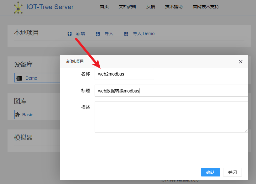 访问边缘设备管理界面:http://your_device_ip:9090/admin/。在本地项目区域点击"新增",填写项目名称如下: