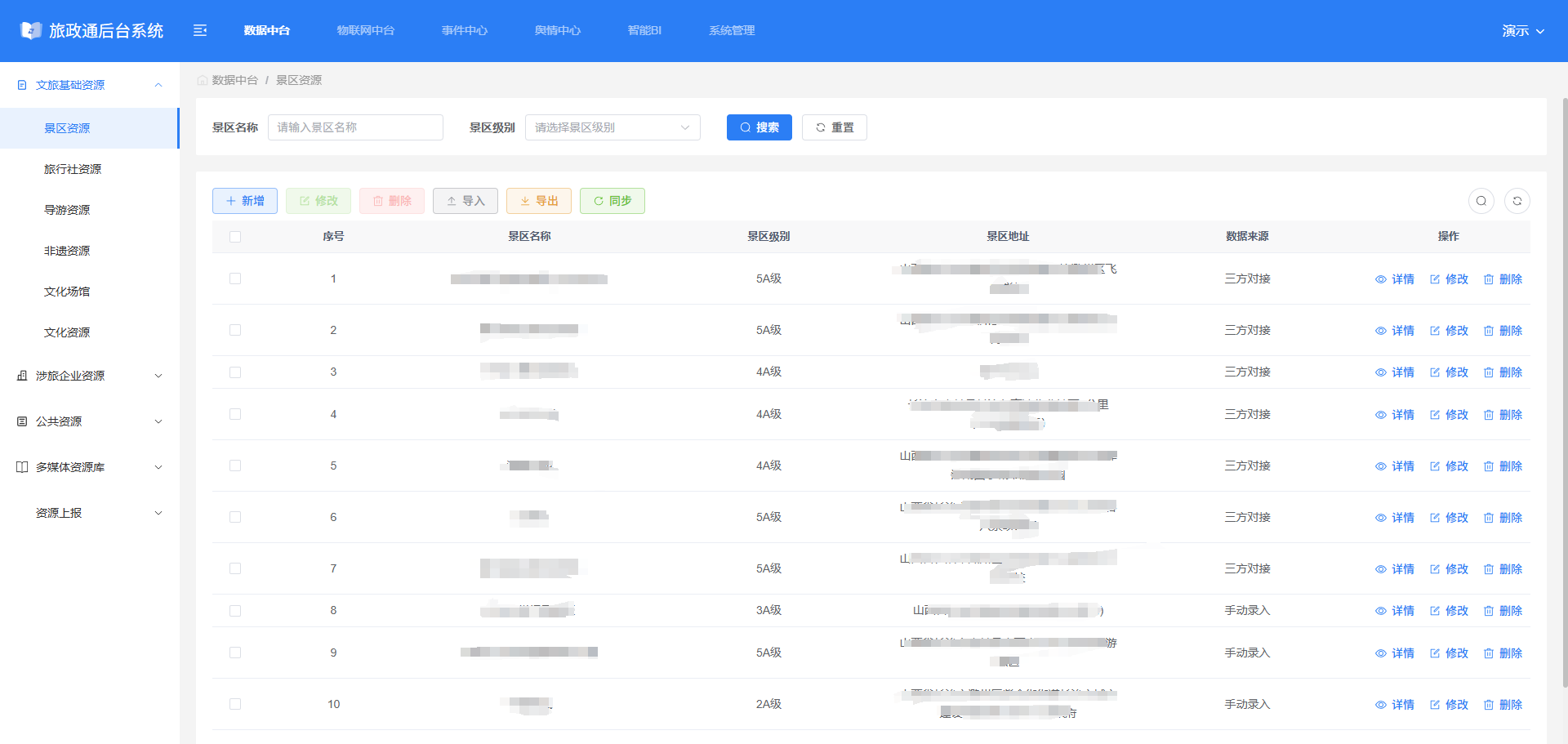 #智慧景区#旅政通#基础资源管理系统,是专为各级文旅主管部门打造的一站式、数字化资源管理中枢。系统致力于解决文旅行业底数不清、数据分散、更新滞后、共享困难等核心痛点,通过构建一个全面、准确、动态更新的文旅基础资源数据库,为行业管理、决策分析、公共服务和产业赋能提供坚实的数据基石。
