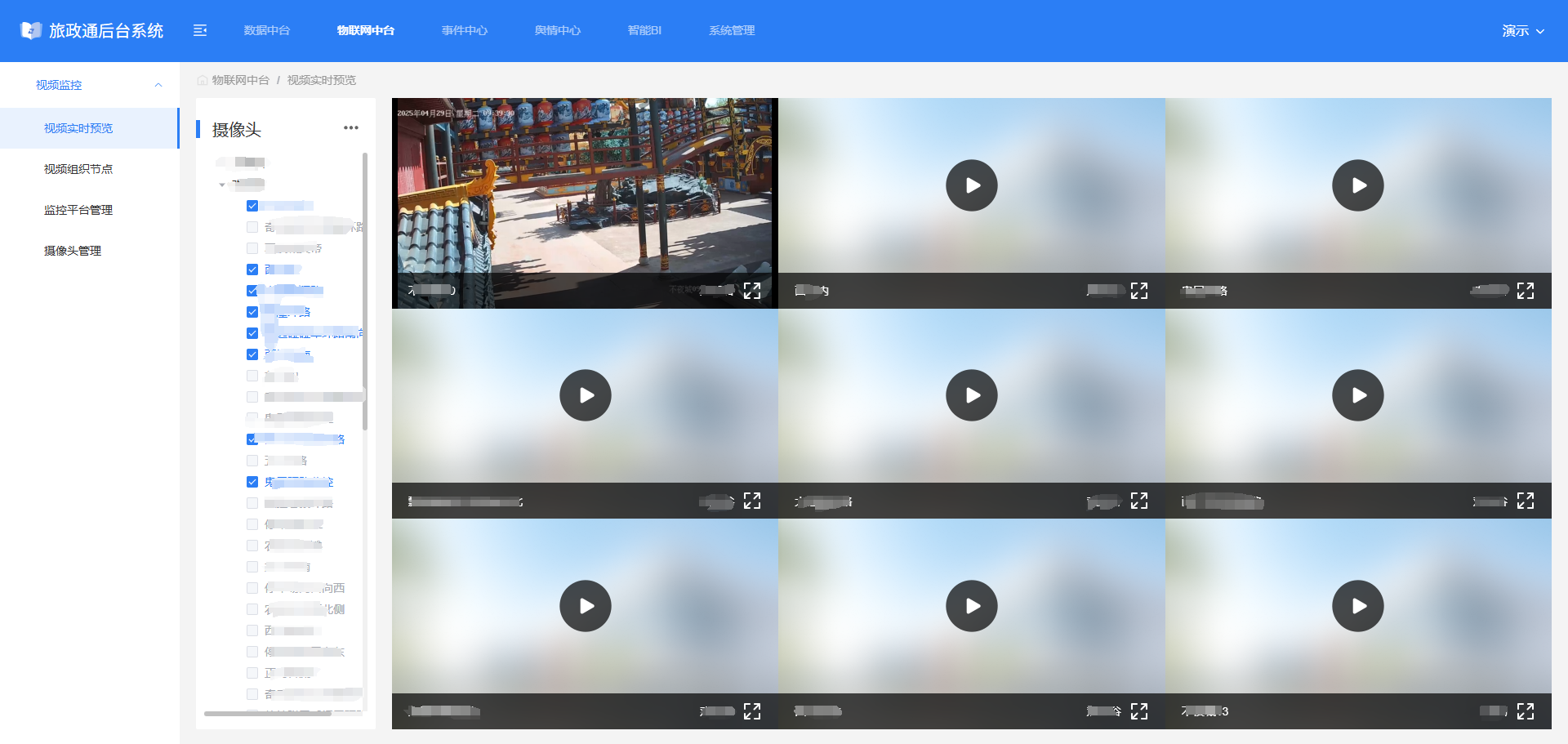 #智慧景区#旅政通#视频监控管理系统,是平台的视觉神经中枢 和安全指挥大脑。它通过整合全域文旅场景下的视频监控资源,实现对重点区域、关键节点、人流密集场所的"全域感知、实时监控、智能预警、高效调度",为文旅行业的安全运营、应急指挥、智慧管理和游客服务提供强大的可视化支撑,是构建#智慧文旅的核心保障。