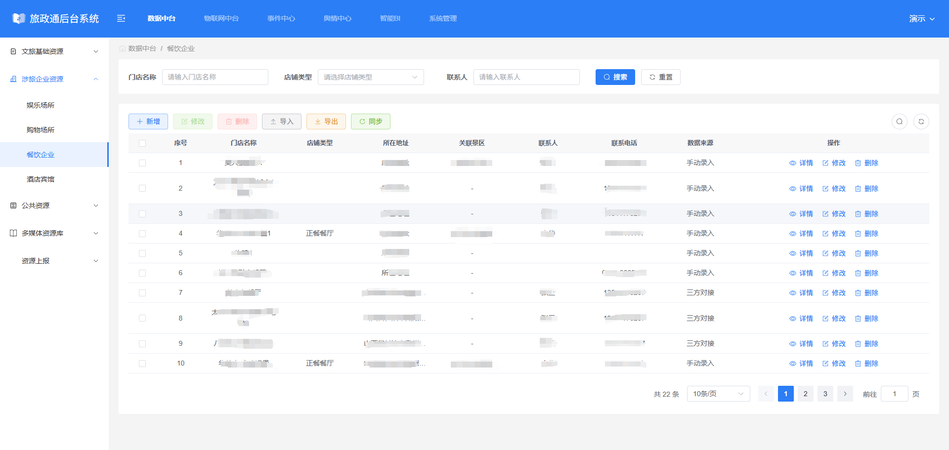 1.支持文旅相关各行业的数据统一管理