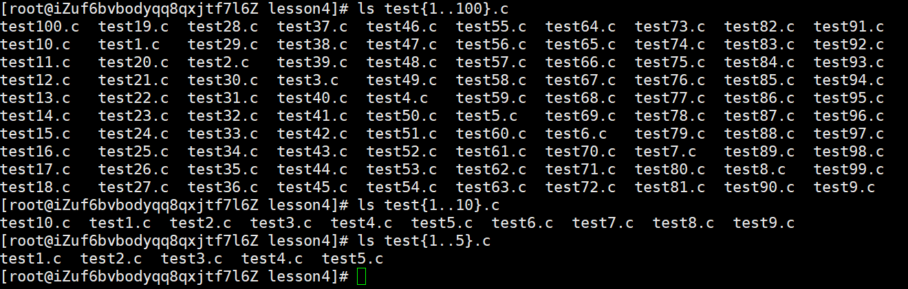 touch test{1..100}.c,其作用就是创建一批文件,这批文件的文件名前缀是test,后缀是.c,1-100会被依次展开