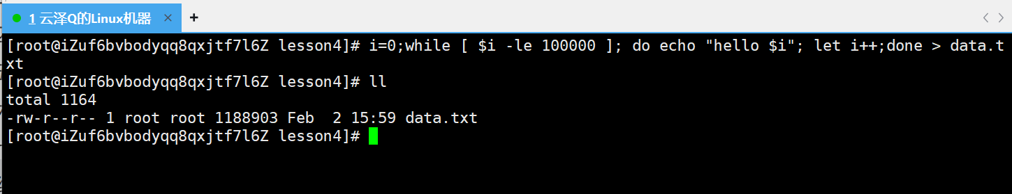 该大文件是10w零1行,进行打包压缩实验需要大量的文件,再介绍一个touch指令的用法