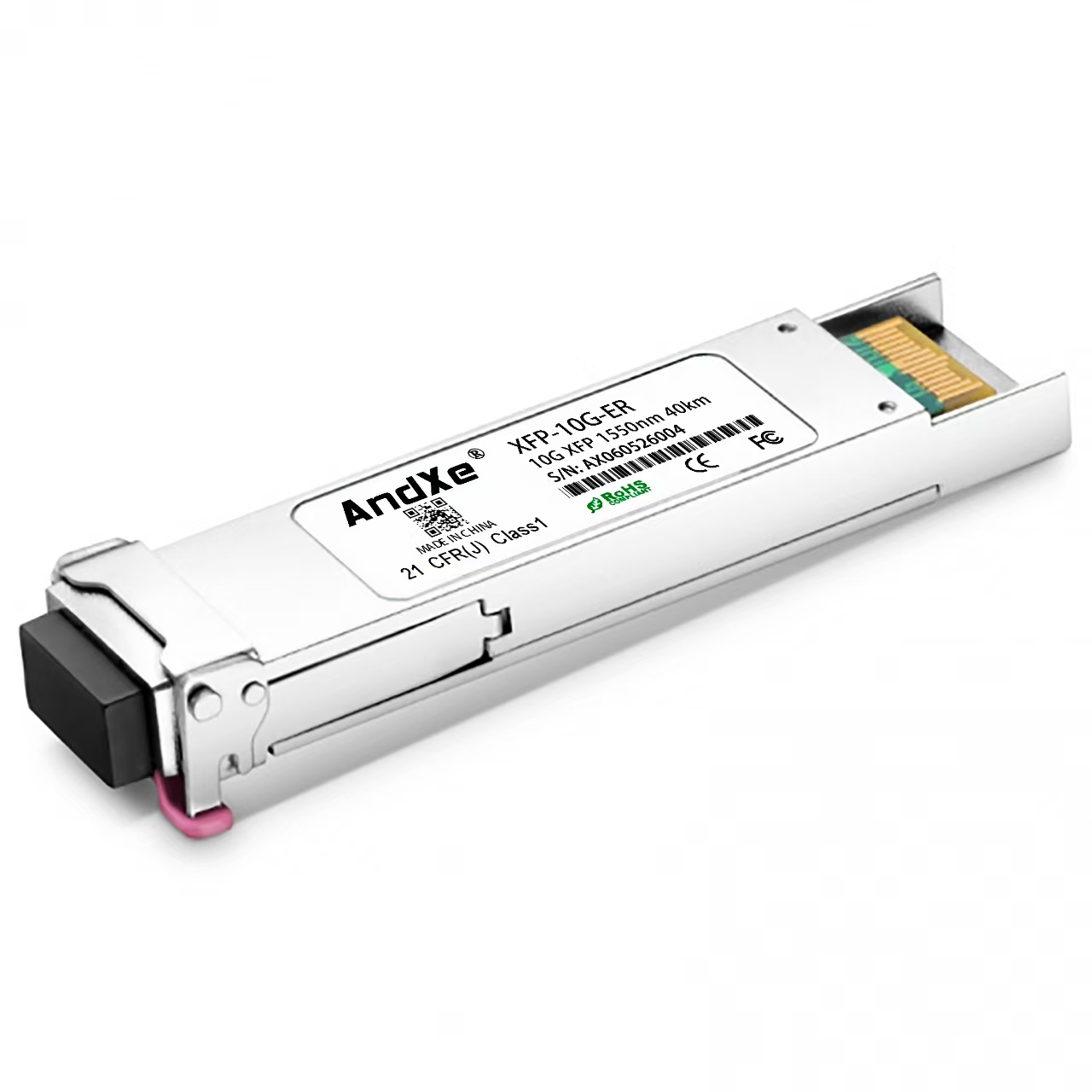 - 多重标准合规,保障产品安全与兼容性模块符合 IEEE 802.3ae、SFF-8431、SFF-8432 以及 10GBASE-ER/EW 等多项行业标准,同时支持热插拔的 XFP MSA 标准,安装更换无需断电,大幅减少网络中断时间。此外,它还达到 1 类 FDA 激光安全级别,并符合 RoHS 标准,满足安全环保的应用要求。