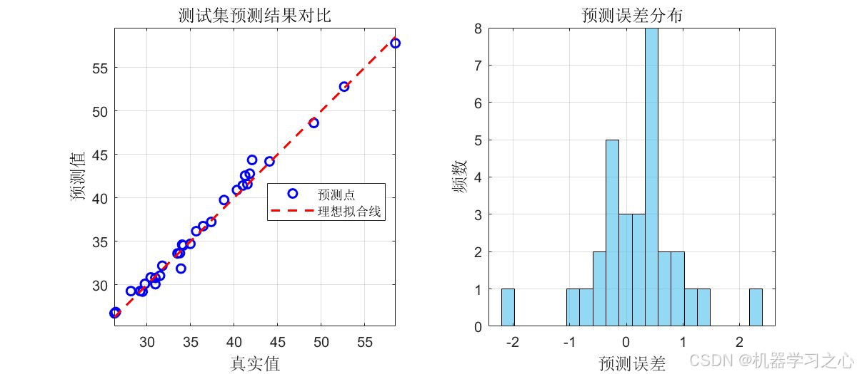 - 可视化分析:包括预测结果对比图、误差分布图、PSO收敛曲线、特征重要性条形图。