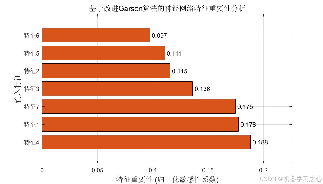 - 特征分析:改进Garson算法(基于权重敏感性)