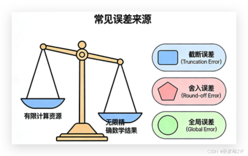 数值算法的核心矛盾是:用有限计算资源,逼近无限精确的数学结果。