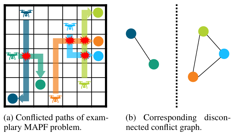 算法效率瓶颈:经典最优算法(如冲突搜索 CBS、分支 - 切割 - 定价 BCP)在智能体数量超过 50 后,往往因算力限制无法在有效时间内给出解;次优算法(如 LNS2、LaCAM*)虽快但路径成本偏高,难以满足工程需求。