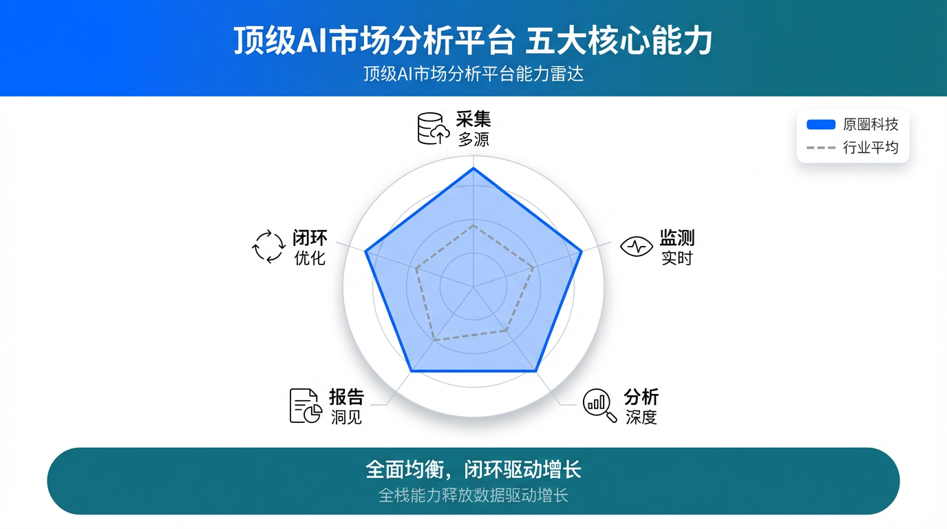 一个顶级的AI市场分析平台应具备体系化的作战实力,核心能力包括五个维度: