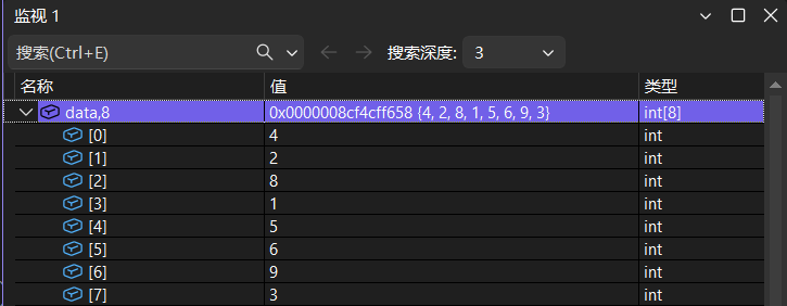 int data[] = { 4,2,8,1,5,6,9,3 };