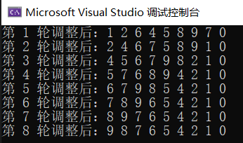在测试向下调整算法的时候也就是在创建大/小堆 ,第二个for循环则是在打印建立好的小堆