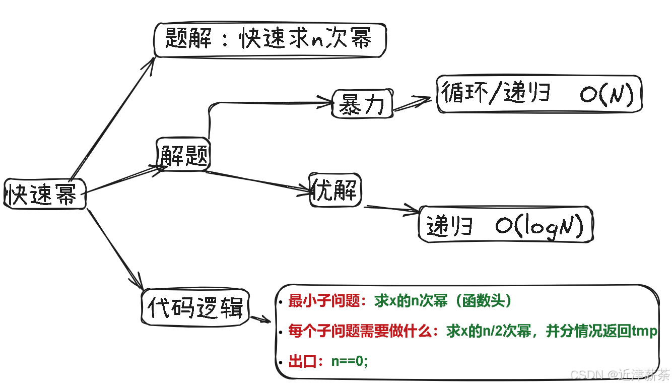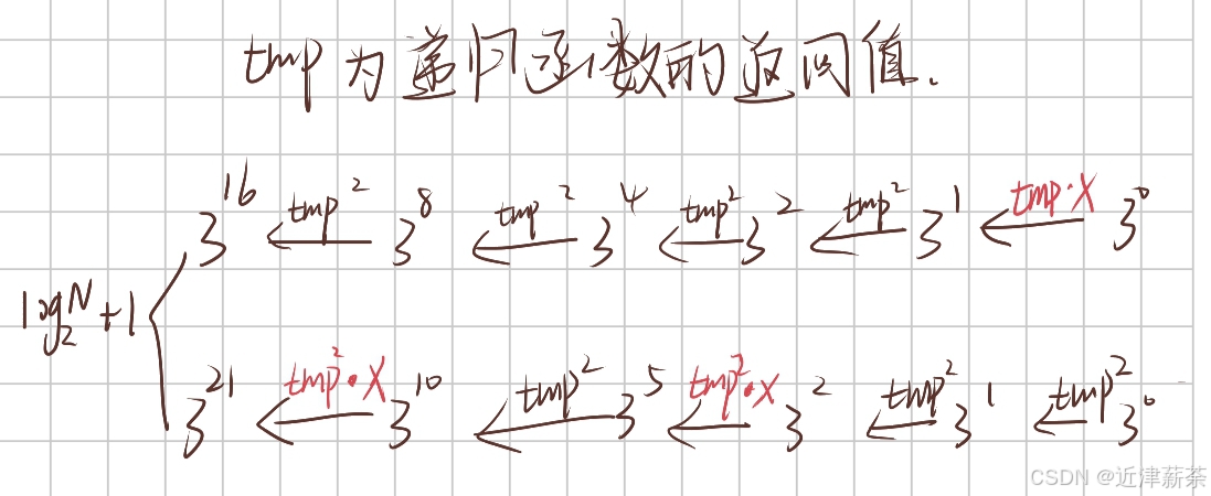 1.处理过程中会出现两情况:奇数/偶数 次幂,那我们在写递归的时候就需要注意分两种情况讨论