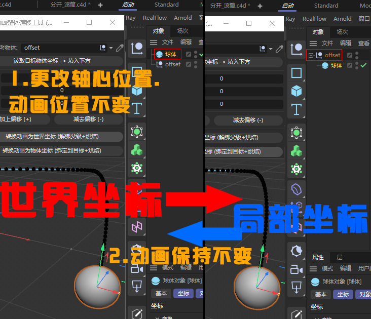 1、有些时候动画k完了,发现物体的轴心不是在自己想要的位置,这时候需要用这个工具进行调整,动画不变。