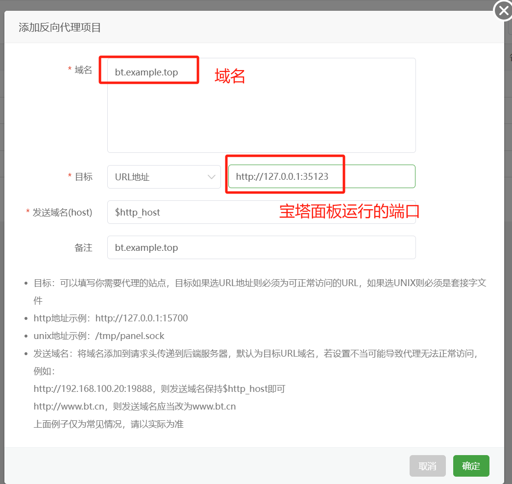 bt.example.top。 - 反向代理: