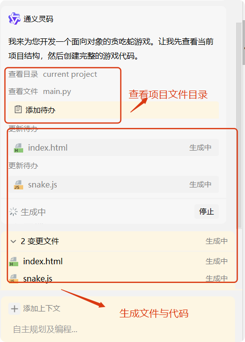 选择文件编辑模式,输入需求都对话框,通一灵码开始进行思考