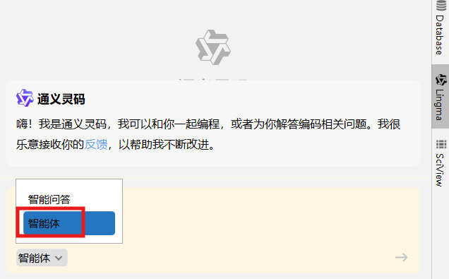 在对话框中,左下角两个选项,一个是智能体,另外另外一个是智能问答
