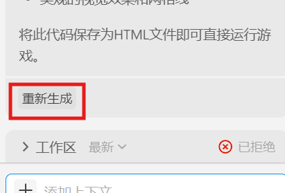 拒绝:通过绝按钮删除人工智能的书写。拒绝后,可以点击对话框的重新生成按钮,重新生成代码