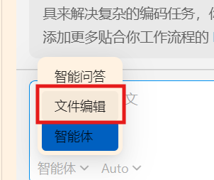 - 在新版的通义灵码中,AI程序员已经修改为 文件编辑模式 点击,