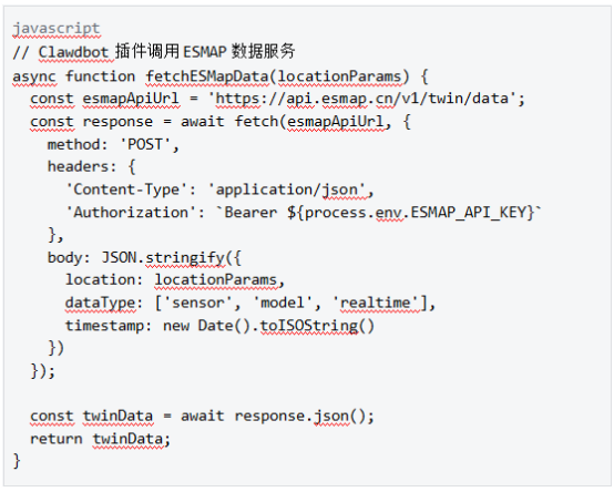 - API 层对接:Clawdbot 的 RESTful API 可以直接调用 ESMAP 的数字孪生服务,实现跨系统功能调用