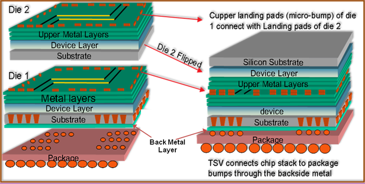 3D IC 系统通常包含多个以三维方式连接的芯片(Die)。在传统 IC 中,输入输出(IO)引脚通过芯片一侧的凸点(Bump)或焊盘实现。为实现 3D 互连,芯片上需额外创建几个组件: