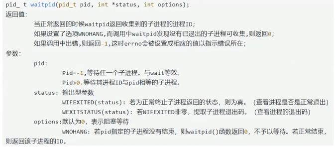 我们先简单了解一下这个wait的功能,但是我们日常使用的时候我们一般不用wait来回收,而是使用我们下面的这个waitpid来回收的。