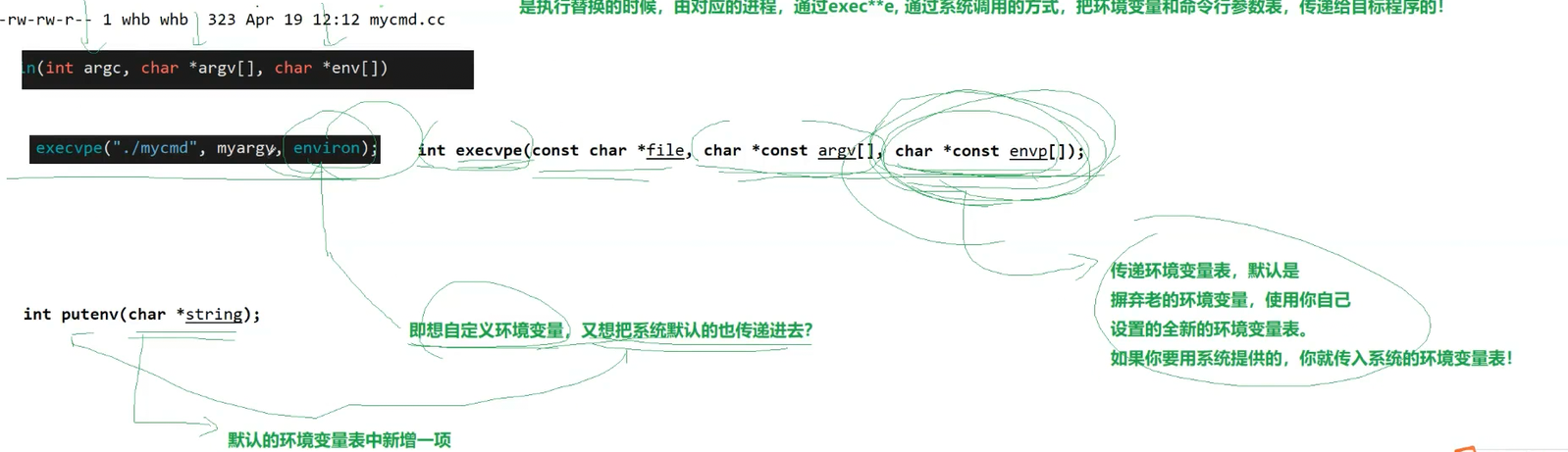 总结一下,如果我们想要使用系统默认的环境变量的话,此时你就可以直接定义一个char **environ 然后把这个传进去就行了,如果你想传入自己的环境变量的话,你就像上面一下自己定义一个然后传进去就行,如果你想传入系统加上默认的话,此时你就可以通过调用putenv这个函数了。