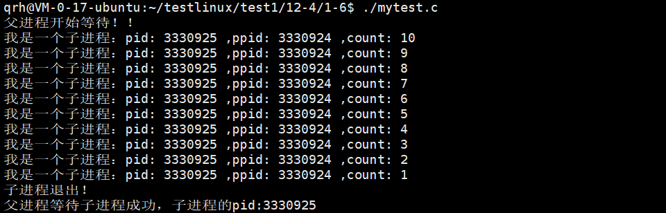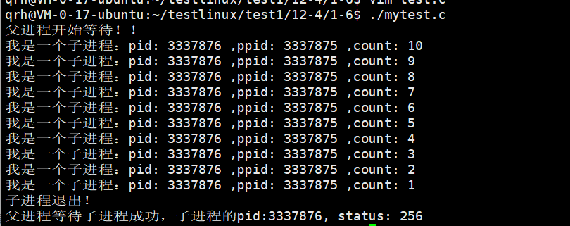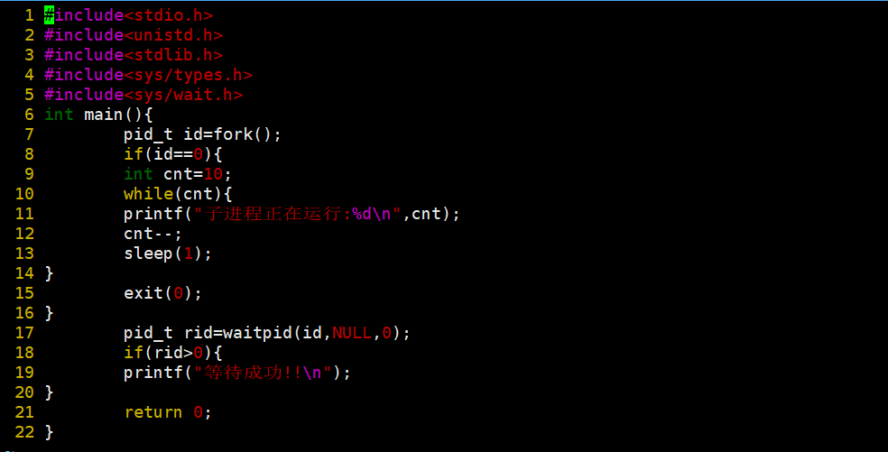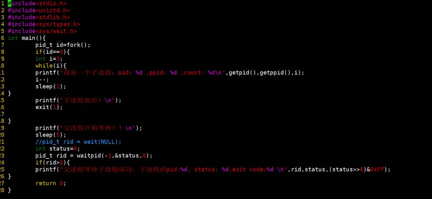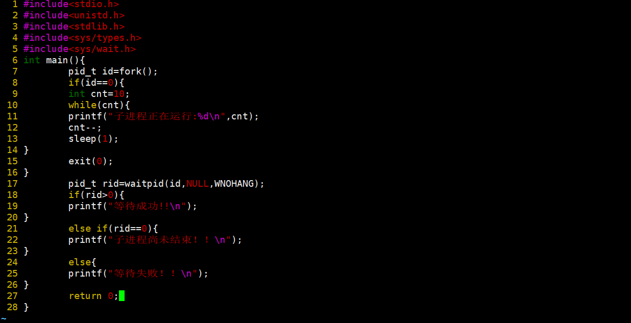 这是我们非阻塞的规则,当我们的父进程调用waitpid的时候,发现子进程结束了,就返回大于0的一个数,一般都是子进程的pid,如果子进程没有退出就返回0,如果等待失败就返回小于0的数,我们下面来实现一下。