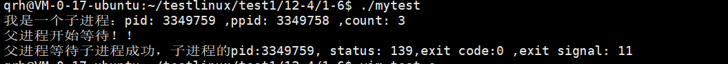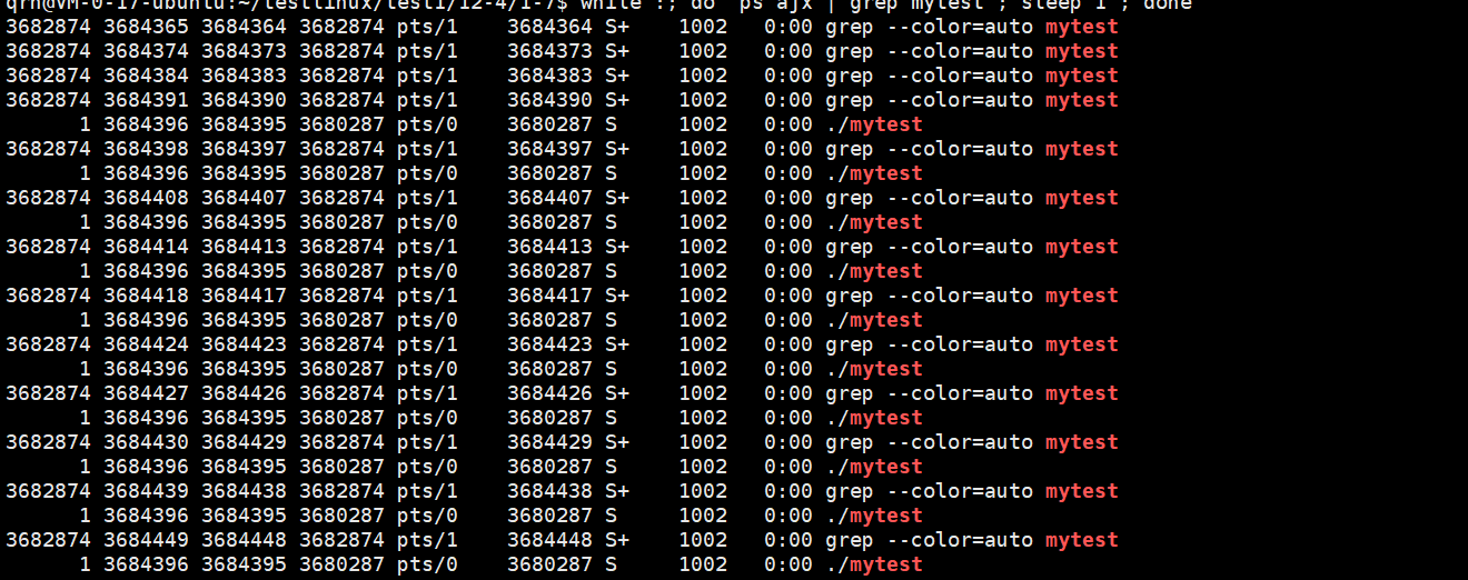 下面依次解释这三个问题,第一个问题的原因就是,因为我是非阻塞的,所以我父进程直接就开始运行调用waitpid了,不再等待子进程了,先解释第三个,因为我们的父进程是非阻塞等待,所以直接就运行然后结束了,此时这个子进程没有父进程就变成孤儿进程了,所以此时要被root领养,所以是1,第二个问题就是,此时这个子进程不被终端管理了,你是无法直接通过Ctrl+c杀死它的,之前我们提过一嘴。