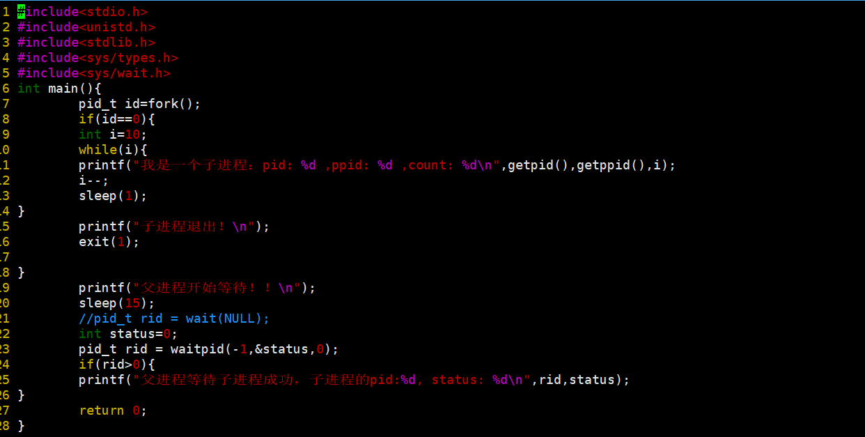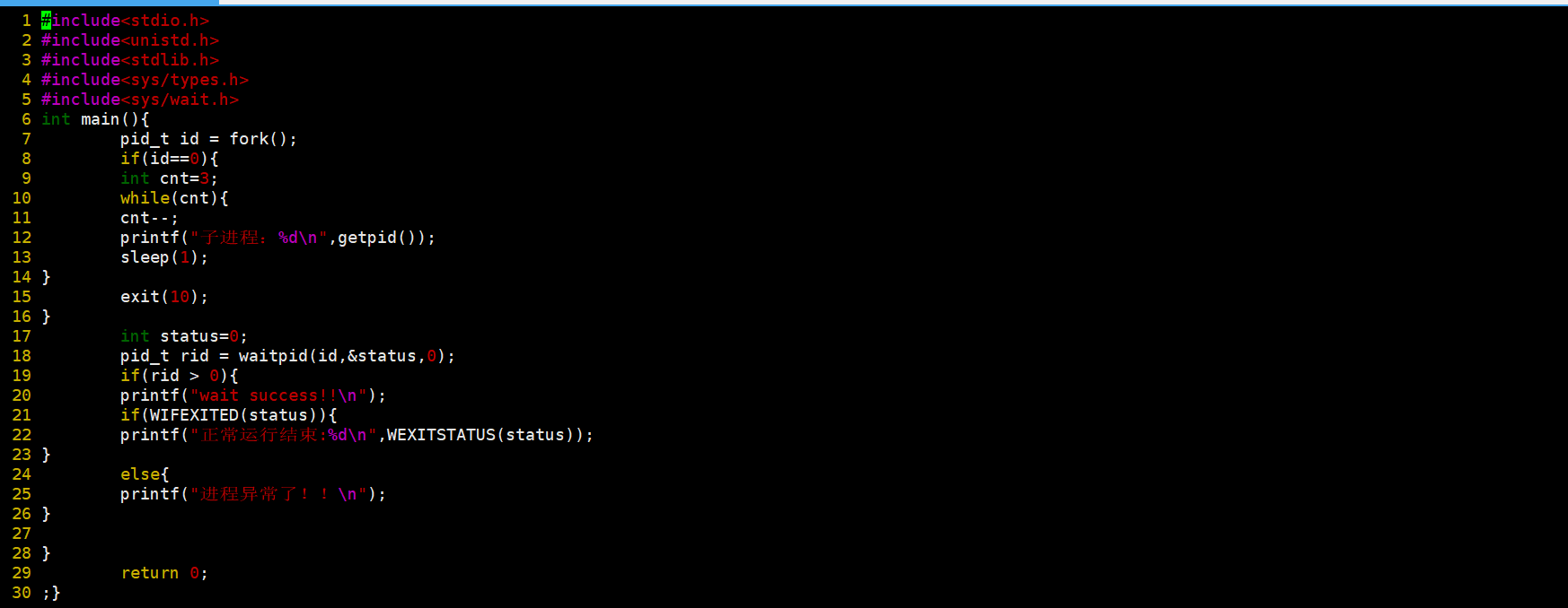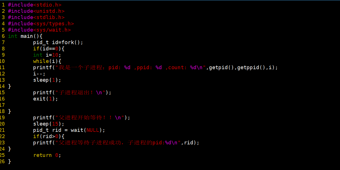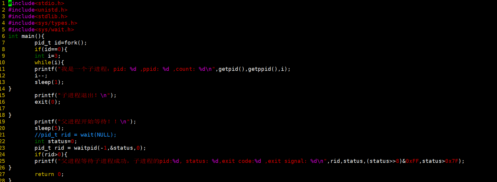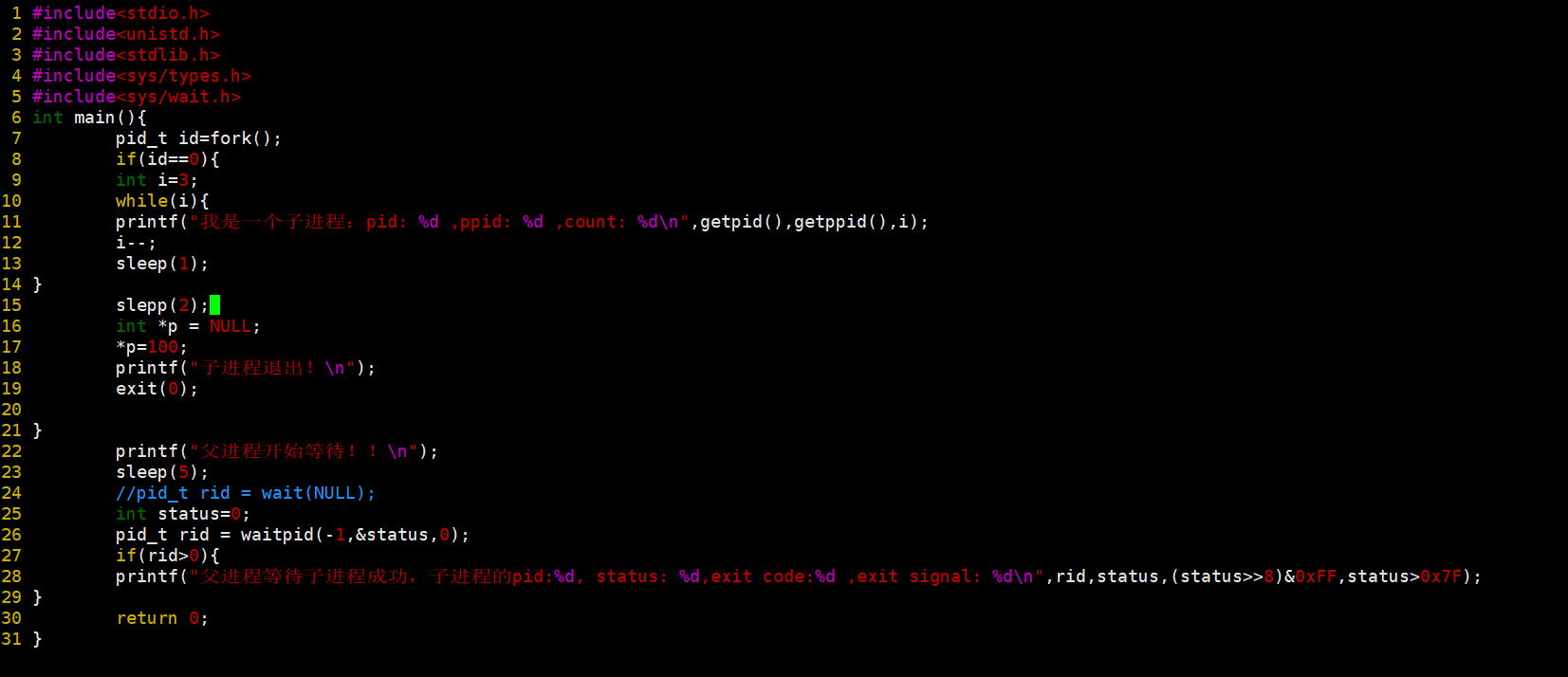 它是通过调用我们的wait相关的一些函数,我们下面先来学习一个wait,我们了解一下它们的功能。