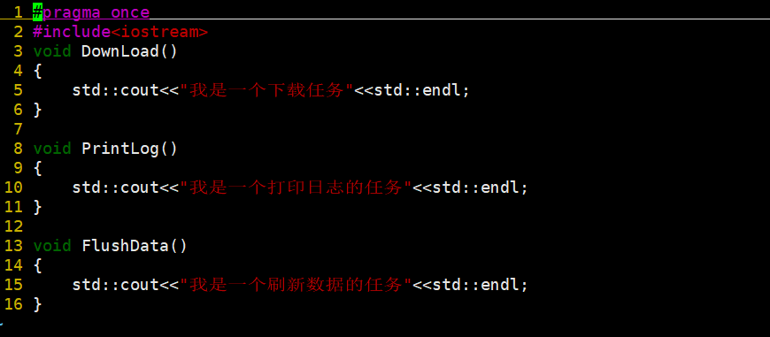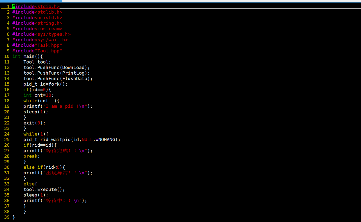 这是我们的测试函数,我们就是通过把这几个函数都插入到我们的vector容器当中,然后只要我们的子进程没有结束,我们就要执行一下我们的这个Execute方法,这个方法的作用就是调用我们的这些方法的。
