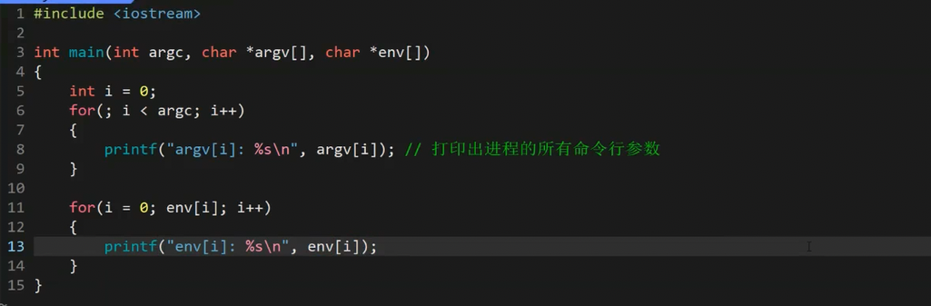 这个函数的意思就是打印出进程所有的命令行参数和环境变量。