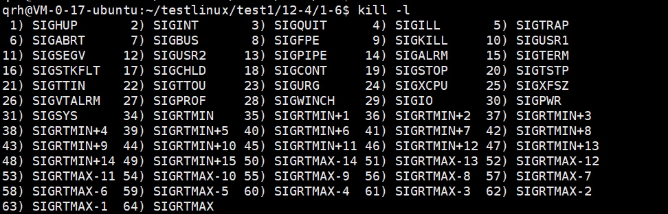 你的进程异常了本质就是操作系统给你的进程发送信号了,我们看一下都有什么信号。